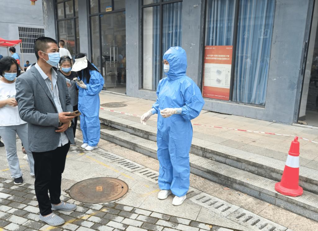 人文旅游系党总支书记易天义身穿防护服主动投身于南加州天蕴南苑小区志愿服务,主要负责小区信息摸排、核酸检测秩序维持、抗原检测试纸发放等。他表示:疫情当前,我们每一个人都是疫情防控的第一人,以我自身之微光,照亮身边人前行之路。作为一名党员教师,应该积极投入到抗疫志愿工作中,尽自己的绵薄之力。