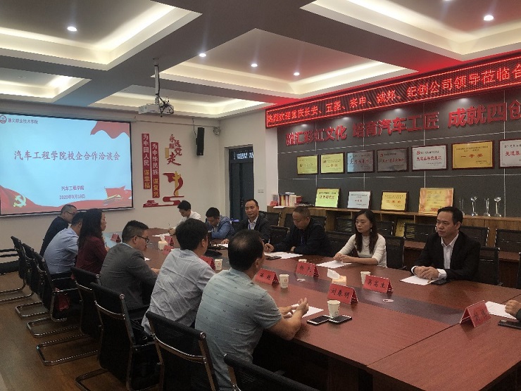 2020年9月18日,汽车工程学院邀请了重庆长安汽车股份有限公司、宗申产业集团、上汽通用五菱汽车重庆分公司和重庆国际劳务培训中心四家企业到校洽谈校企合作事宜并签署合作协议。汽车工程学院党总支书记任柏松、院长敖克勇、副院长王征义及相关老师出席签约仪式。