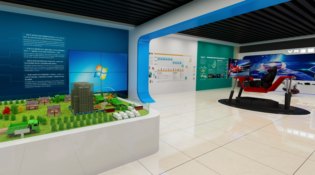 三、未来展望:展示智能网联车沙盘,呈现自动循迹、自动避障、自动识别红绿灯等功能。使体验者了解智能网联发展方向,研究智能网联相关技术,开展相关实训试验。