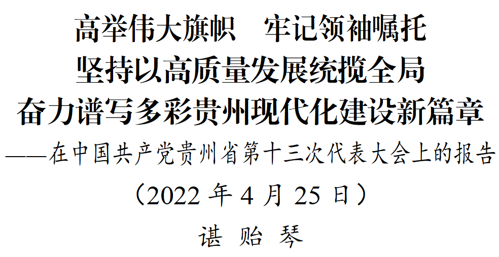 谌贻琴在中国共产党贵州省第十三次代表大会上的报告(全文)