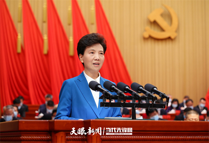谌贻琴同志代表中共贵州省第十二届委员会向大会作报告。贵州日报天眼新闻记者 杜朋城 摄