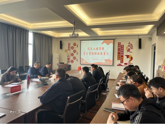 汽车工程学院党总支对新法的学习高度重视,5月20日下午组织全体教职工在勤业楼会议室开展专题会议,深入学习职业教育法,本次学习由汽车工程学院党总支书记任柏松主持。