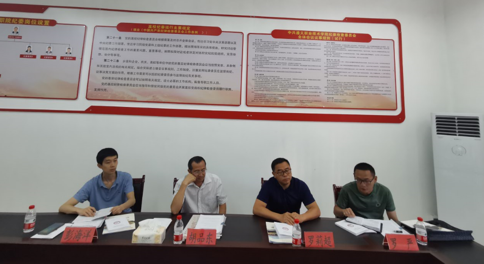 为进一了解全市市管学校纪委履职尽责情况,推动学校纪委工作高质量发展,7月12日市纪委市监委派驻第九纪检监察组组长、市教育体育局党组成员胡品东一行到我院纪委调研工作,学院党委委员、纪委书记田聪,纪委委员、计财处处长左湘黔、纪委委员、基础部主任陈良万和全体纪检监察干部参加。