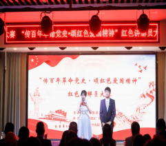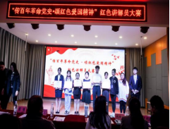 晚上19:00点,“传承百年革命党史•颂红色爱国精神”红色讲解员大赛在知行楼童话剧场进行。